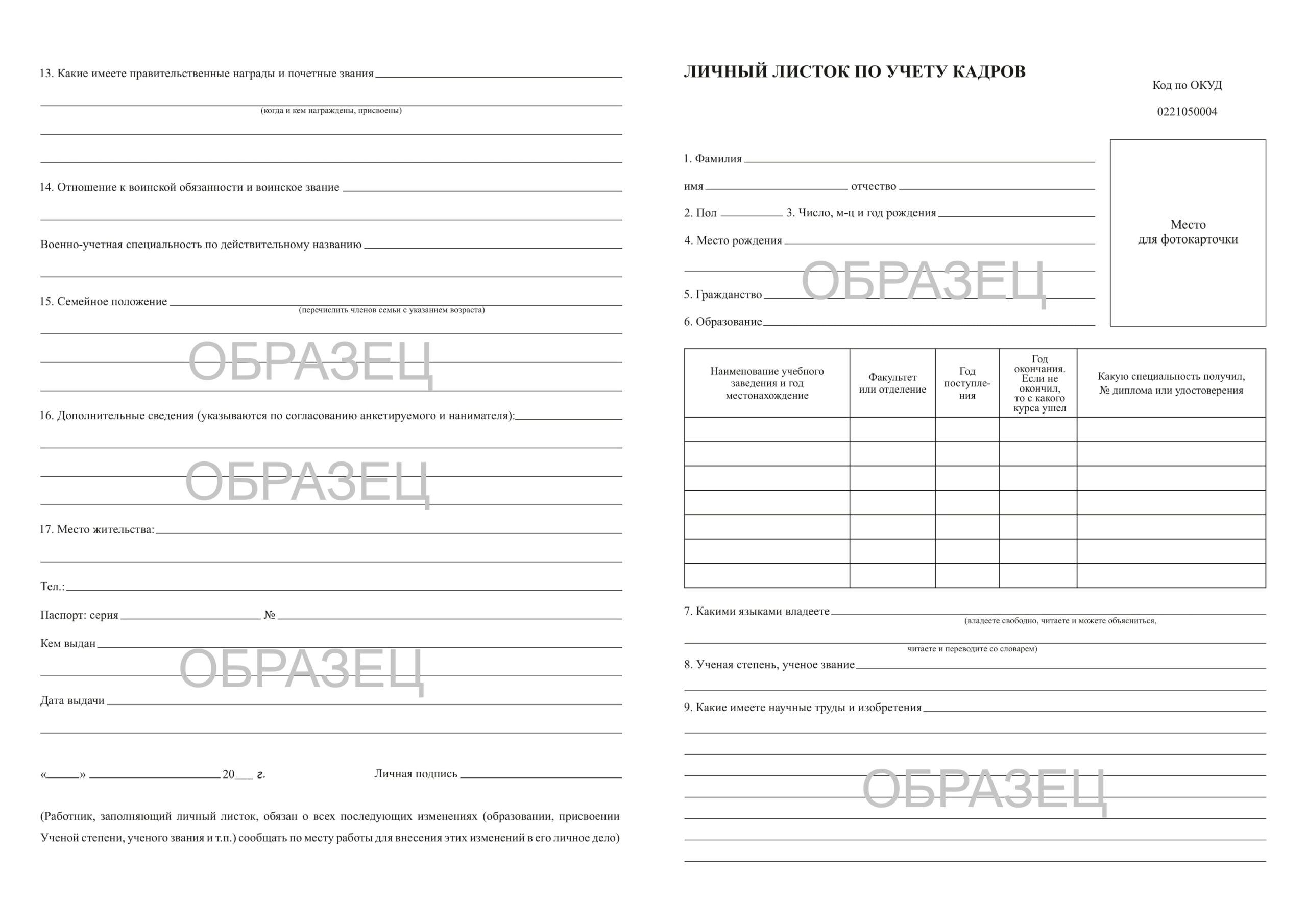 Личный листок по учету кадров